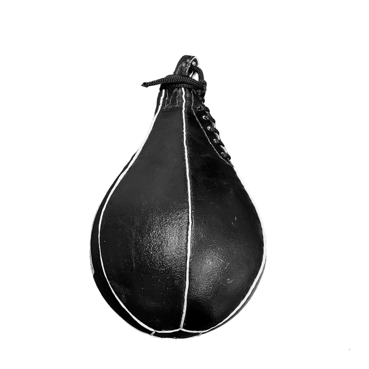 Gruszka wykonana ze skóry naturalnej wzmocnionej podkładem bawełnianym. Dzięki niedużym rozmiarom idealnie nadaje się do treningu refleksu np. pod daszkiem.