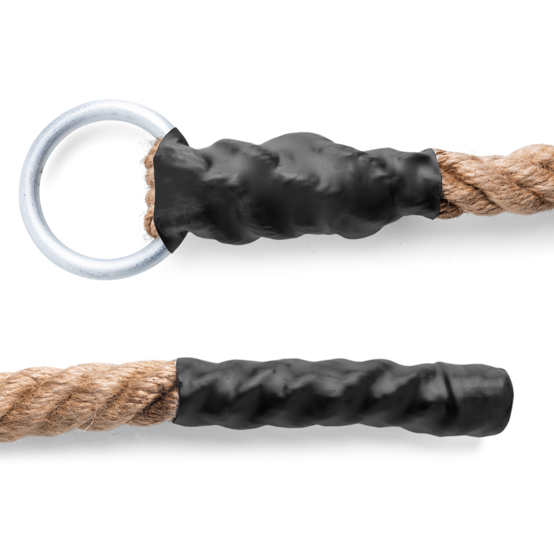 • Liny dzięki wielu splotom włókien jutowych charakteryzują się ogromną wytrzymałością. Dodatkowo z jednej strony lina zakończona jest metalowym oczkiem, dzięki czemu w łatwy sposób można ją powiesić na haku, z drugiej strony natomiast końcówka liny jest zapleciona i zabezpieczona przed rozplątaniem.