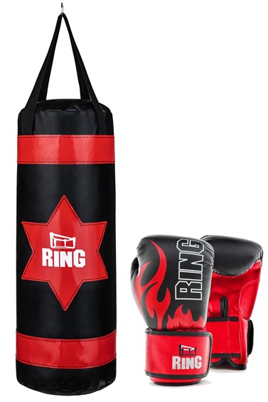 Zestaw bokserski dziecięcy worek 60x22cm czarny + rękawice bokserskie FIRE
