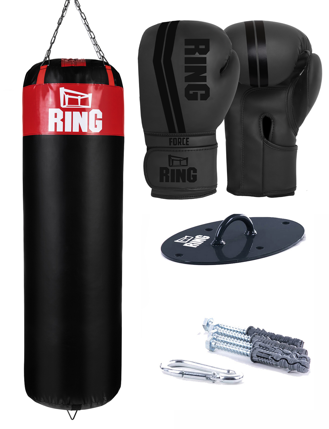 Zestaw bokserski: worek Kolos 150 x 45 cm czerwony + rękawice Force + mocowanie owalne