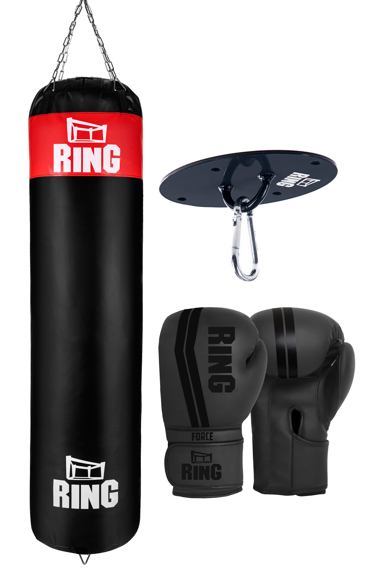 Zestaw bokserski: worek Super 160 x 40 cm 50 kg + rękawice FORCE + mocowanie owalne